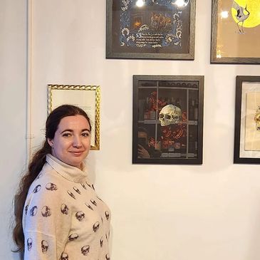 Eugena is a historical reenactor and a member of the Society for Creative Anachronisms (SCA), where she is known as Lada Monguligin. She creates pieces based on medieval and Renaissance arts from across the world. She also teaches on a variety of historical calligraphy and illumination topics, as part of her SCA participation.